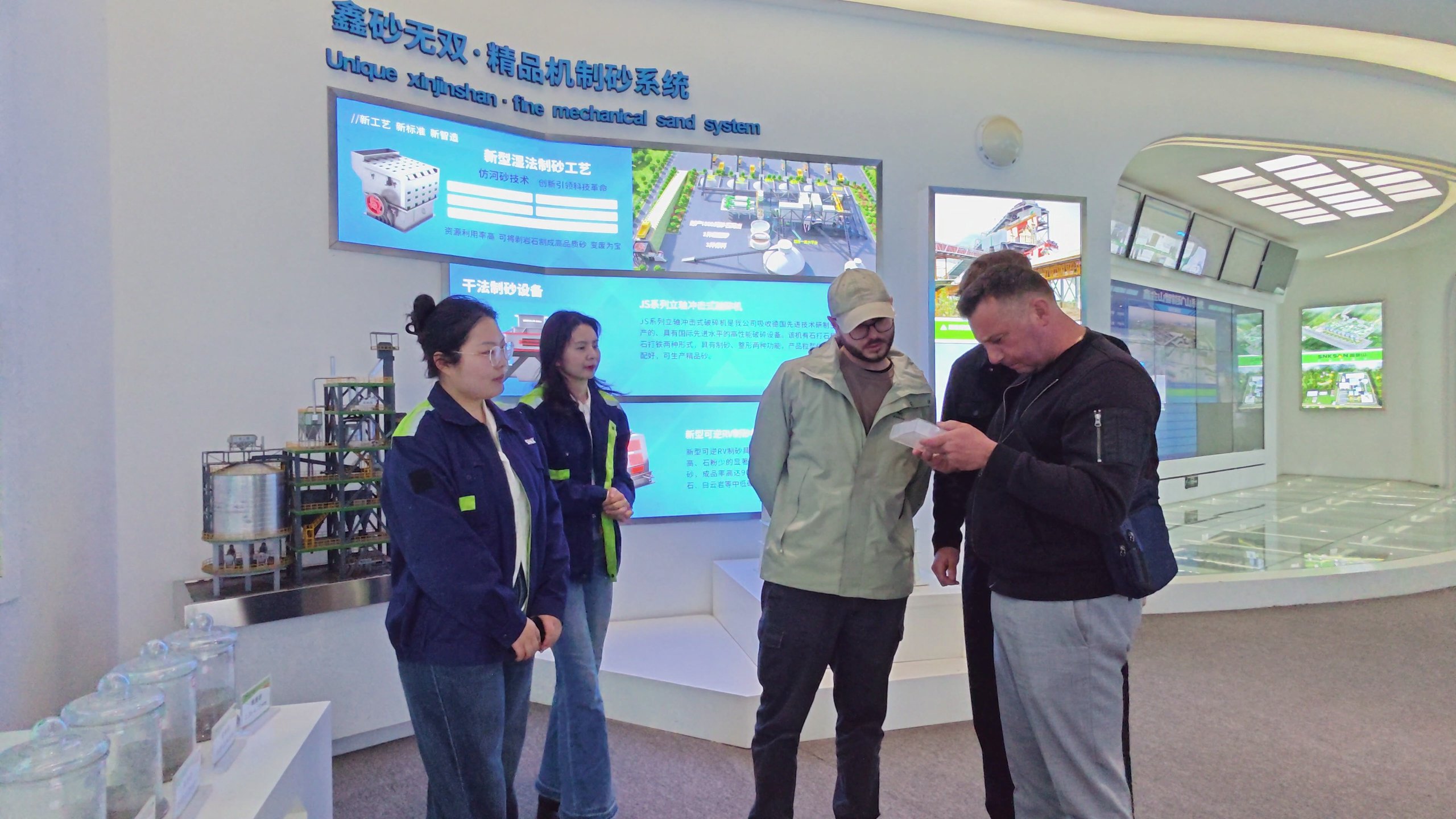 考察團一行在公司市場團隊的全程陪同下,先后深入鑫金山智能化生產車間、產品展廳及智能控制中心,近距離感受企業的研發實力、制造水平與服務理念。陪同人員結合企業發展歷程,詳細介紹了鑫金山在破碎篩分裝備研發、智能系統集成及EPC總包服務等領域的深厚積淀與突出成果,讓海外客戶對公司的全產業鏈服務能力有了系統認知。