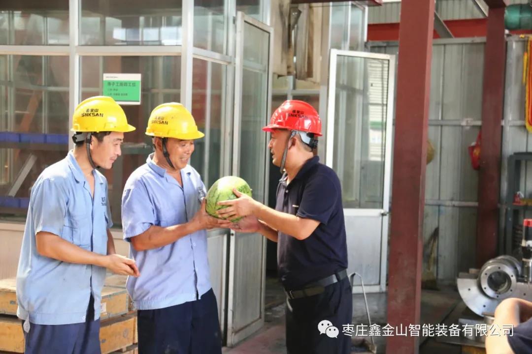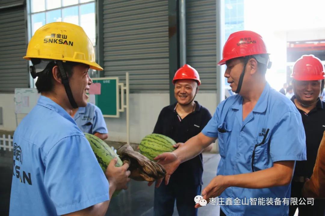 8月17日,鑫金山黨支部和工會(huì)開(kāi)展了“送西瓜、送清涼”慰問(wèn)活動(dòng),鑫金山黨支部書(shū)記、工會(huì)副主席劉洪選,生產(chǎn)總監(jiān)侯國(guó)立,黨支部組織委員、安全設(shè)備科科長(zhǎng)孫華國(guó)親自上陣,將精心準(zhǔn)備的西瓜及時(shí)配送到車間每一位員工的手中,將公司的關(guān)心、關(guān)愛(ài)傳遞到員工的心中,使員工在高溫酷暑季節(jié)里感受到公司的絲絲“清涼”。