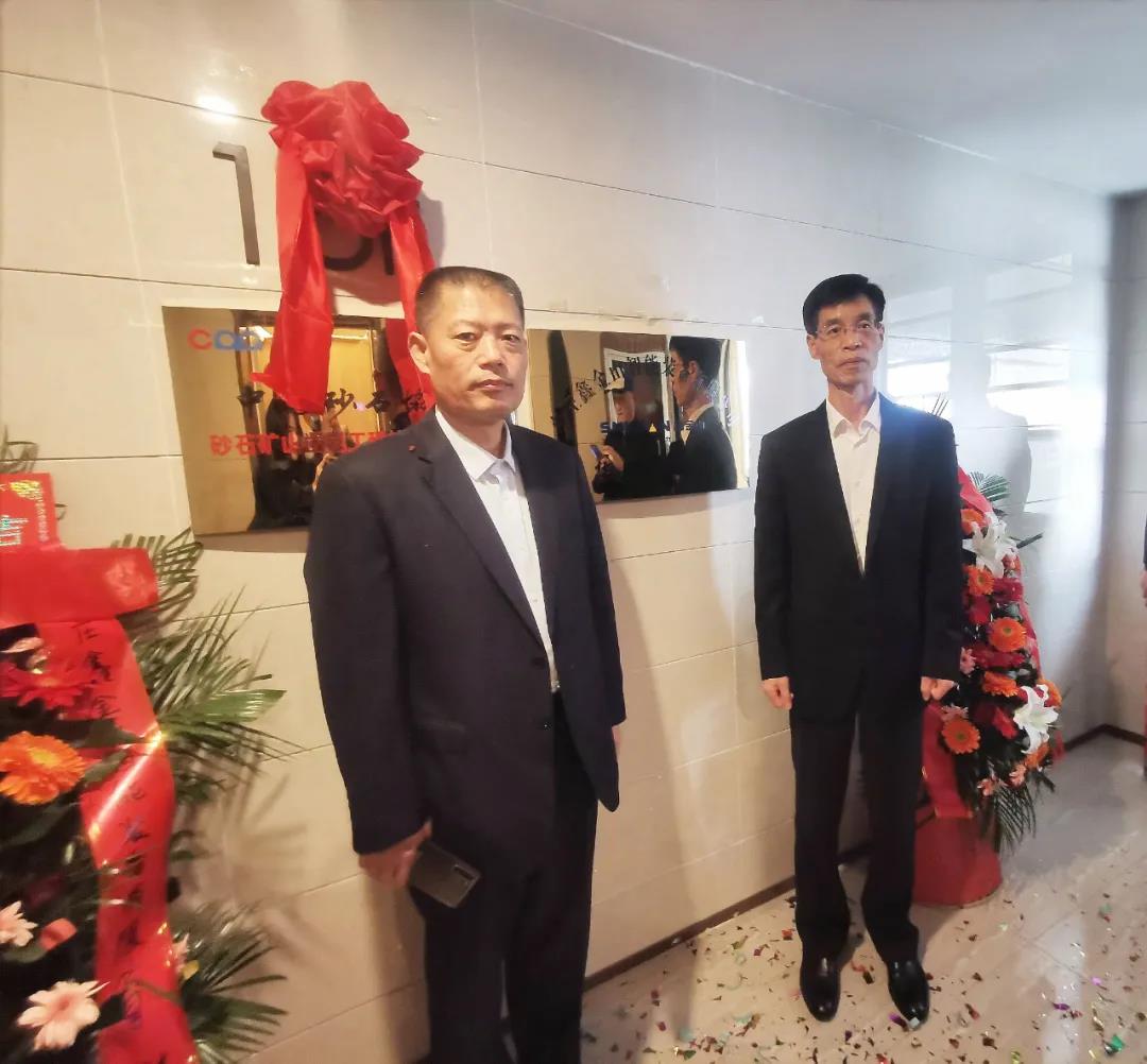 由中國砂石協(xié)會(huì)會(huì)長胡幼奕和棗莊鑫金山智能裝備有限公司董事長孫中巖共同為鑫金山華中事業(yè)部揭牌。