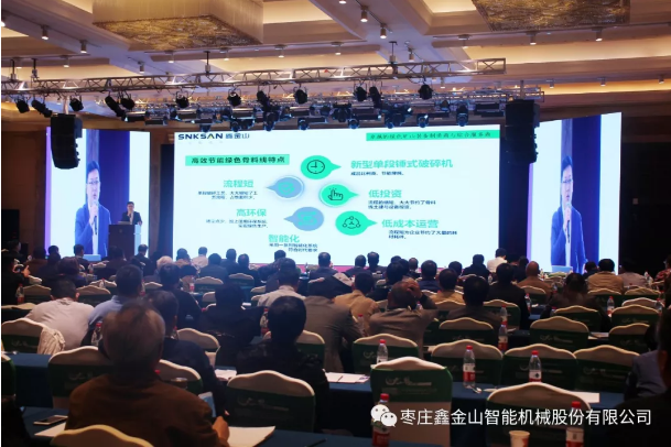 鑫金山公司營銷總監胡振霖在會上作了《鑫金山高效節能破碎裝備與工藝在綠色礦山中的應用》的演講。并推出了高性能單缸液壓圓錐破,吸收歐洲先進技術,集機械、液壓、電氣、自動化、智能控制等技術于一體,可以廣泛應用于中碎、細碎以及超細碎等破碎作業中。演講中說到綠色礦山建設行業標準應積極采用先進高效節能的開采加工設備、技術和工藝,堅決淘汰高耗能、高污染、低效率裝備和工藝,加快綠色礦山建設。鑫金山始終秉承綠色礦山建設宗旨,堅持科技創新,持續研發新產品、新工藝。憑借成熟的骨料線短流程經驗,成為了國內知名的專業破碎篩分設備制造商、綠色礦山裝備制造商、砂石骨料生產線EPCO綜合服務商。同時,胡總監代表公司介紹了鑫金山骨料線的智能化和EPCO總包工程項目案例,均得到了與會嘉賓的高度認可和關注。此次參展給公司帶來了大批潛在客戶,收獲巨大,為鑫金山開拓新的市場奠定了重要基礎。